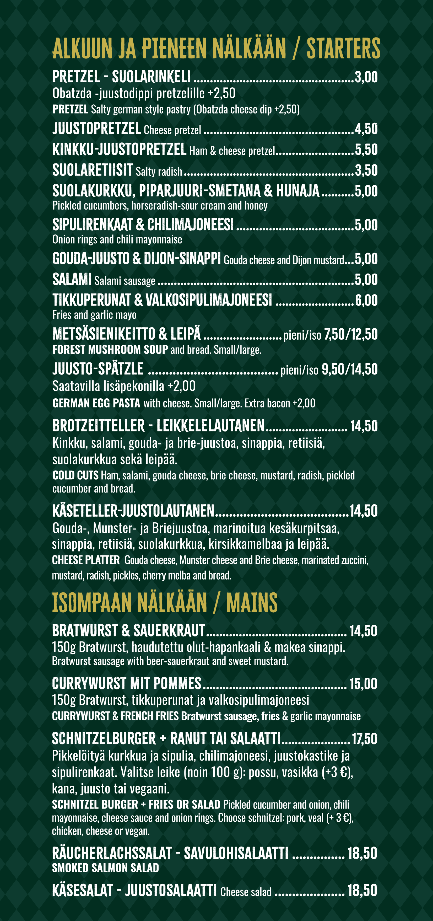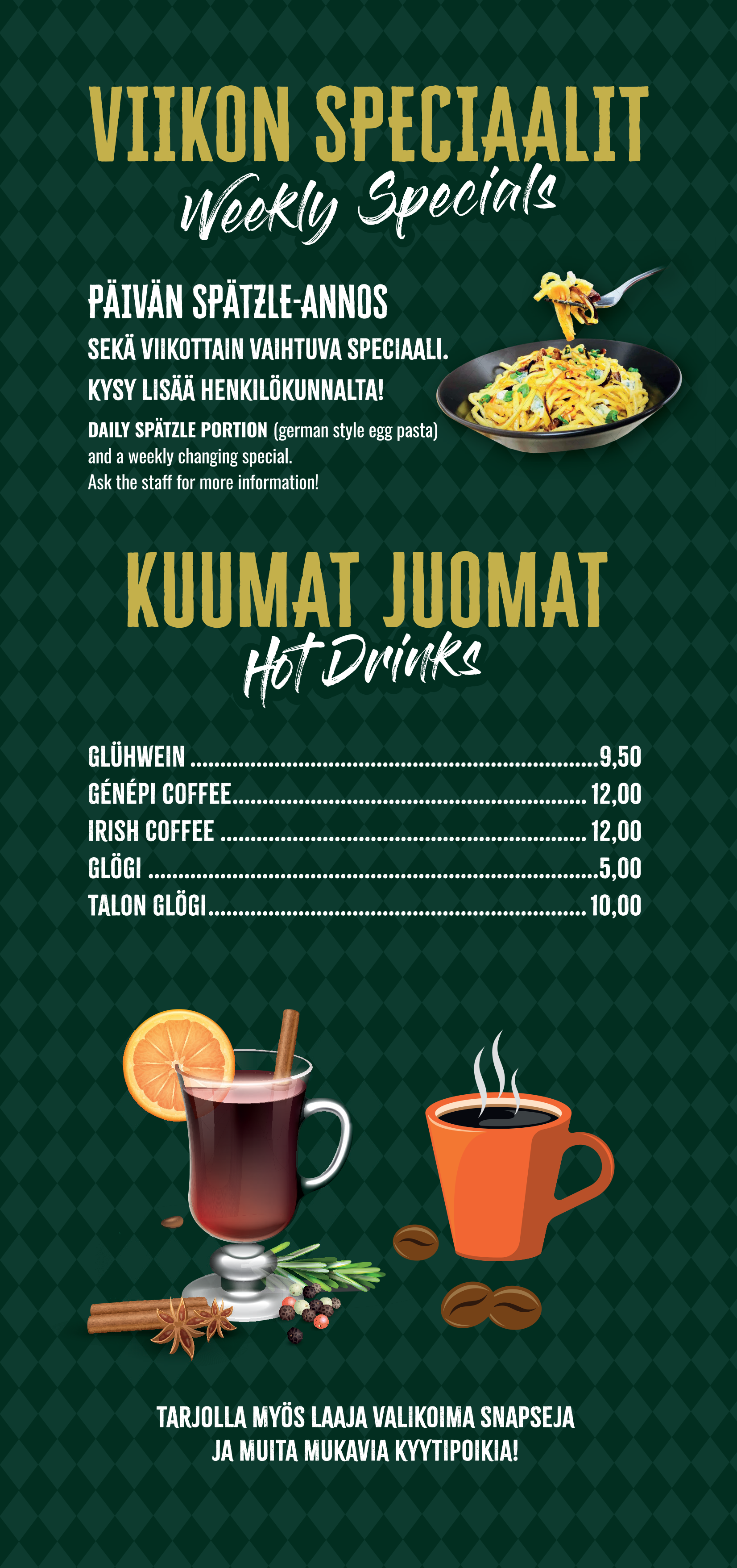 Our main products are, of course, various schnitzels. We like German restaurant life, its food and drinks. We now want to bring the offer and atmosphere of these high-quality, but relaxed restaurants to Tammela and the entire Pirkanmaa region.